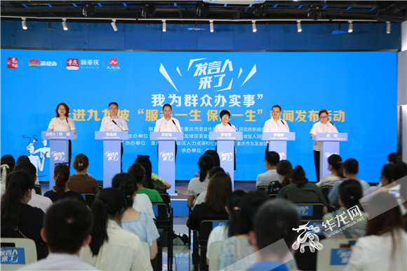 “你提问,我回答!”9月26日下午,“发言人来了——我为群众办实事”九龙坡区“服务一生 保障一生”发布活动顺利举行。活动现场,群众就关心的社保、就业、职称等问题向区人力社保局“发言人”提问。九龙坡区人力资源和社会保障局五位发言人细心作答,并以对话形式向群众解读政策,分享成果。