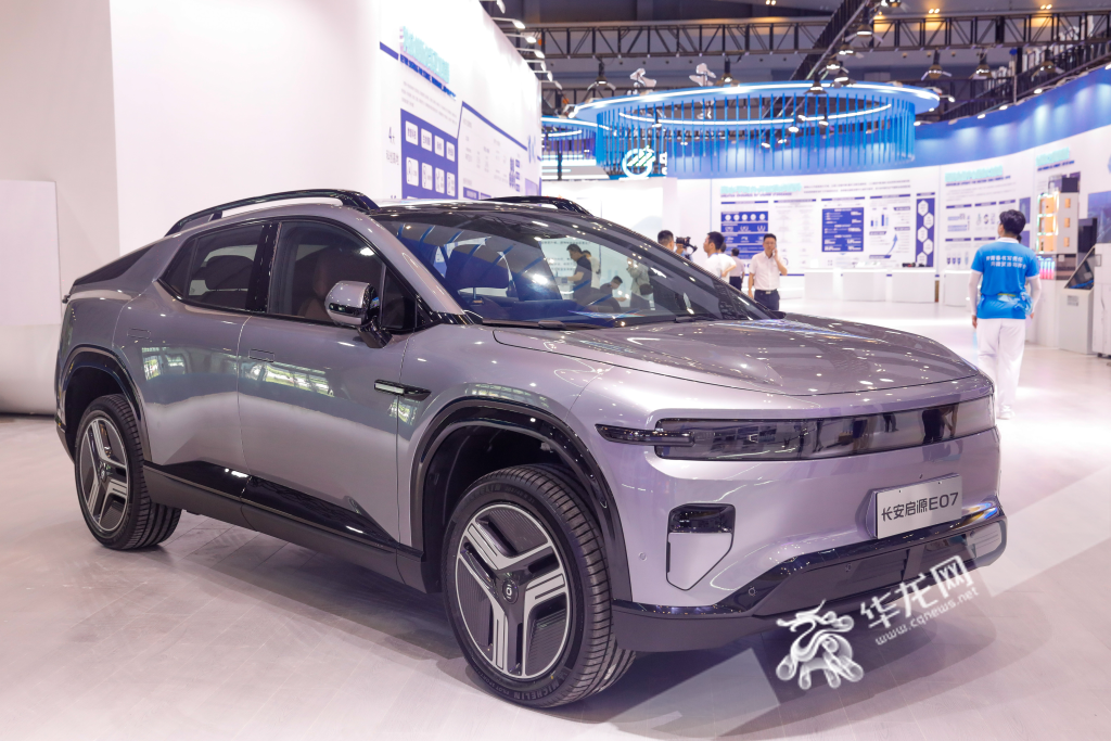 其中,长安汽车带来的新款汽车启源E07汽车受到了大家的关注。记者在现场看到,该款汽车的形态可变,基于可调节空气悬架及滑动后穹顶的能力,能从一台中大型高端智能电动SUV,切换为低趴舒适的轿车形态、拥有装载能力的皮卡形态。