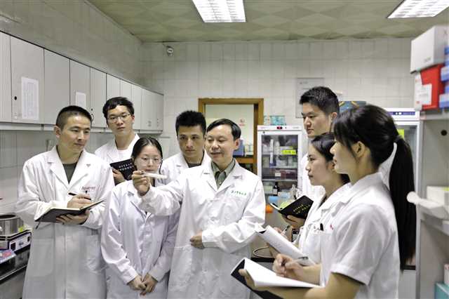 陆军军医大学教授朱楚洪正在实验室做研究