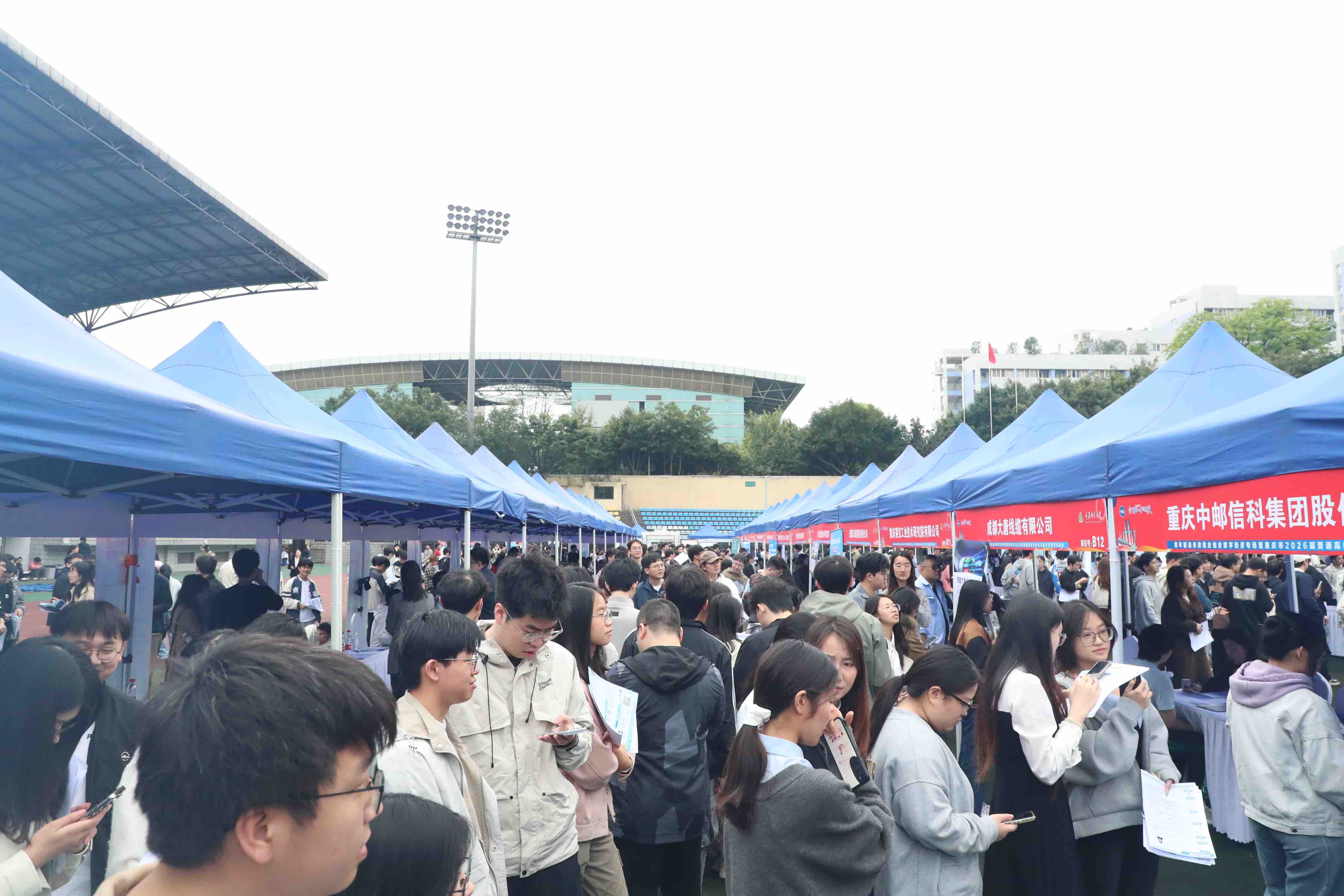 据统计,活动现场吸引了重庆邮电大学及周边院校2026届毕业生及社会人才近万人次入场求职,现场共收到简历2万余份,初步达成就业意向3500余人。