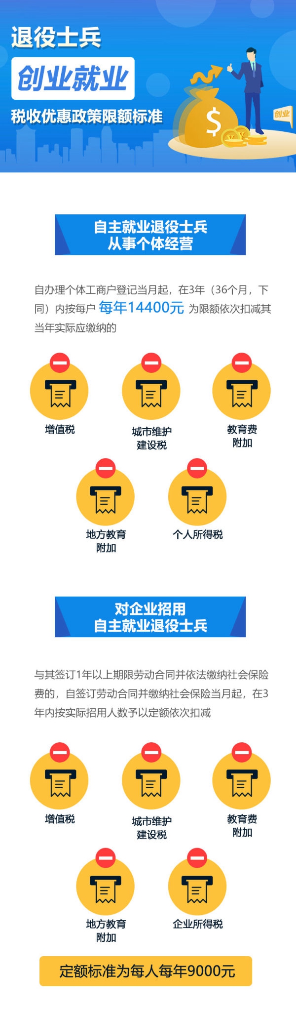 一图读懂丨退役士兵创业就业税收优惠政策限额标准