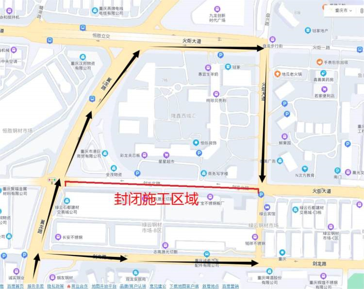 封闭施工期间,禁止一切社会车辆经剑龙北路翼龙路路口往水碾方向行驶,有通行需求的车辆可经剑龙路或火炬大道绕行。