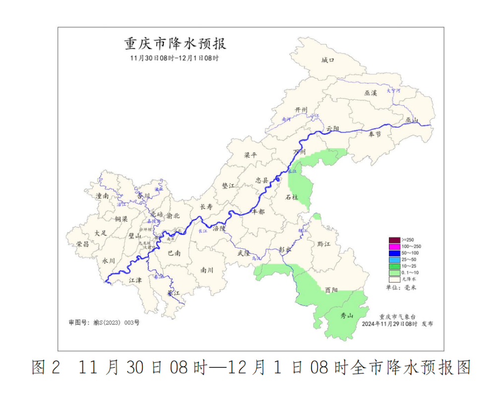 11月30日白天到夜间(3日08时—1日08时),大部地区多云,偏东部分地区阴天有零星小雨,气温-1~20℃;中心城区多云,气温10~17℃。