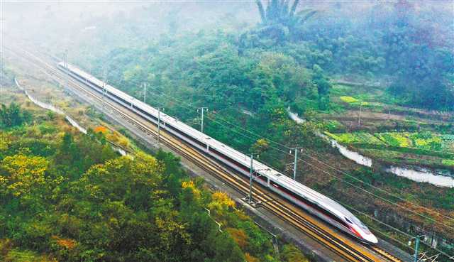 12月24日,G8608次复兴号高铁列车在成渝高铁线上飞驰。特约摄影 钟志兵/视觉重庆