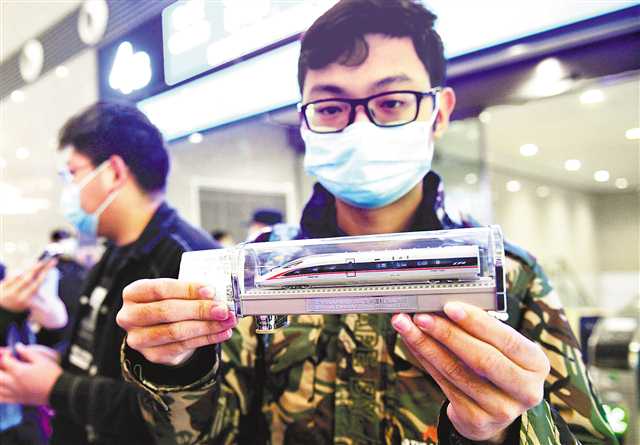 12月24日,重庆沙坪坝站,一名旅客带着复兴号模型搭乘刚开通的复兴号前往成都。首席记者 崔力 摄/视觉重庆
