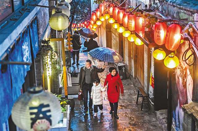 2月15日,渝中区,市民夜游山城巷。首席记者 龙帆 摄/视觉重庆