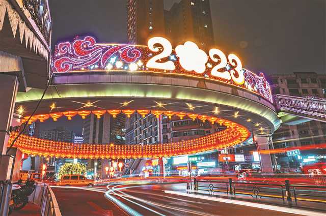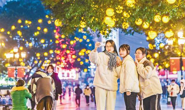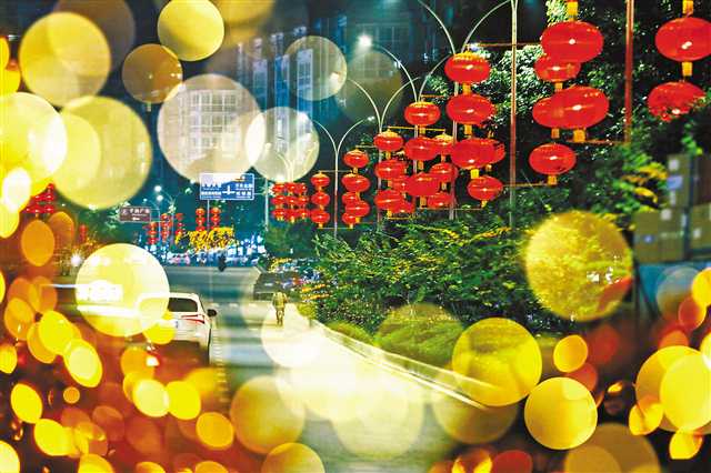渝中区解放碑商圈,街头巷尾的迎春灯饰将城市装扮得格外漂亮。首席记者 龙帆 摄/视觉重庆