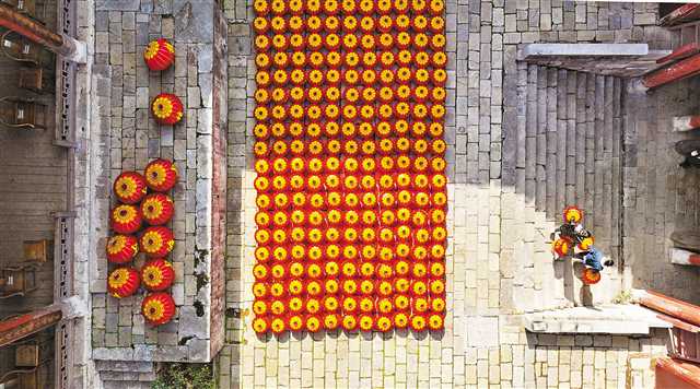 酉阳龚滩古镇,工作人员正在布置灯饰。通讯员 邱洪斌 摄/视觉重庆