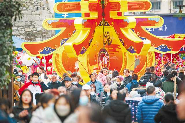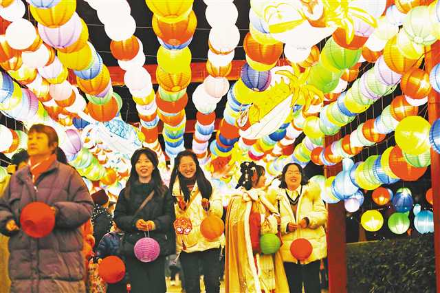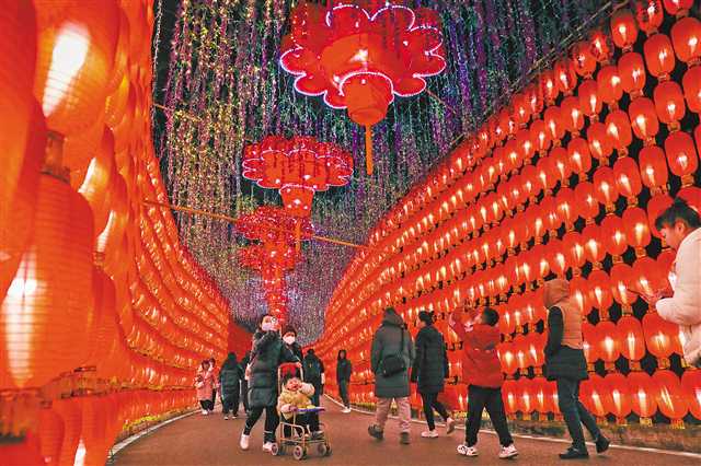 梁平区桂香天地·乐欢天景区,游客在花灯节上参观游玩。特约摄影 刘辉/视觉重庆