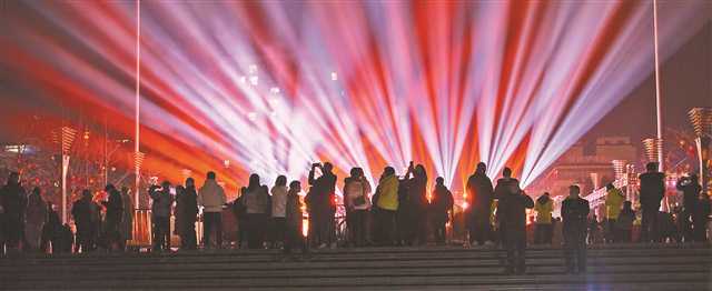 丰都县城三合街道滨江路上灯光表演吸引市民围观。通讯员 陈勇 摄/视觉重庆