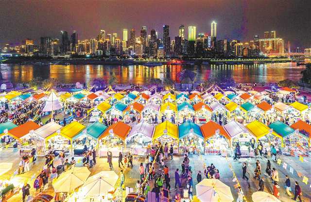 南滨路“彩虹集市”上,前来消费的市民数量众多。聚焦创业创新扩增量,重庆市着力培育夜市经济,取得了明显的成效。(本报资料图片)首席记者 龙帆 实习生 尹诗语 摄/视觉重庆