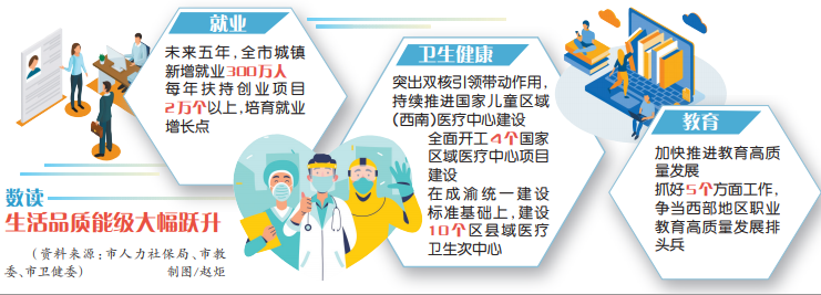 重庆市建设成渝地区双城经济圈工作推进大会(以下简称“推进大会”)提出,要“加快建设高品质生活示范区”“推动成渝地区双城经济圈建设走深走实”“不断促进人的全面发展和社会全面进步,实施惠民暖心优服行动,巩固拓展脱贫攻坚成果,促进就业增收,提升教育、医疗等公共服务供给水平”,实现生活品质能级大幅跃升。