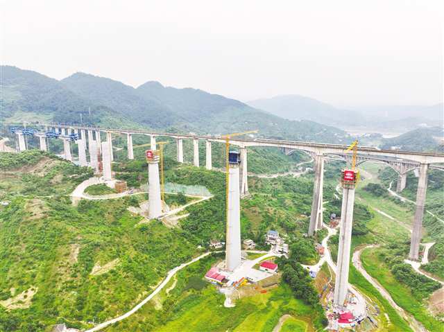 6月11日,蔡家沟双线特大桥16号主墩封顶。(中国铁建大桥局供图)