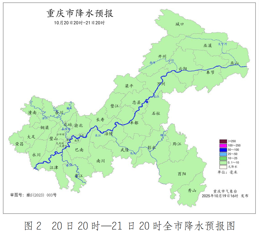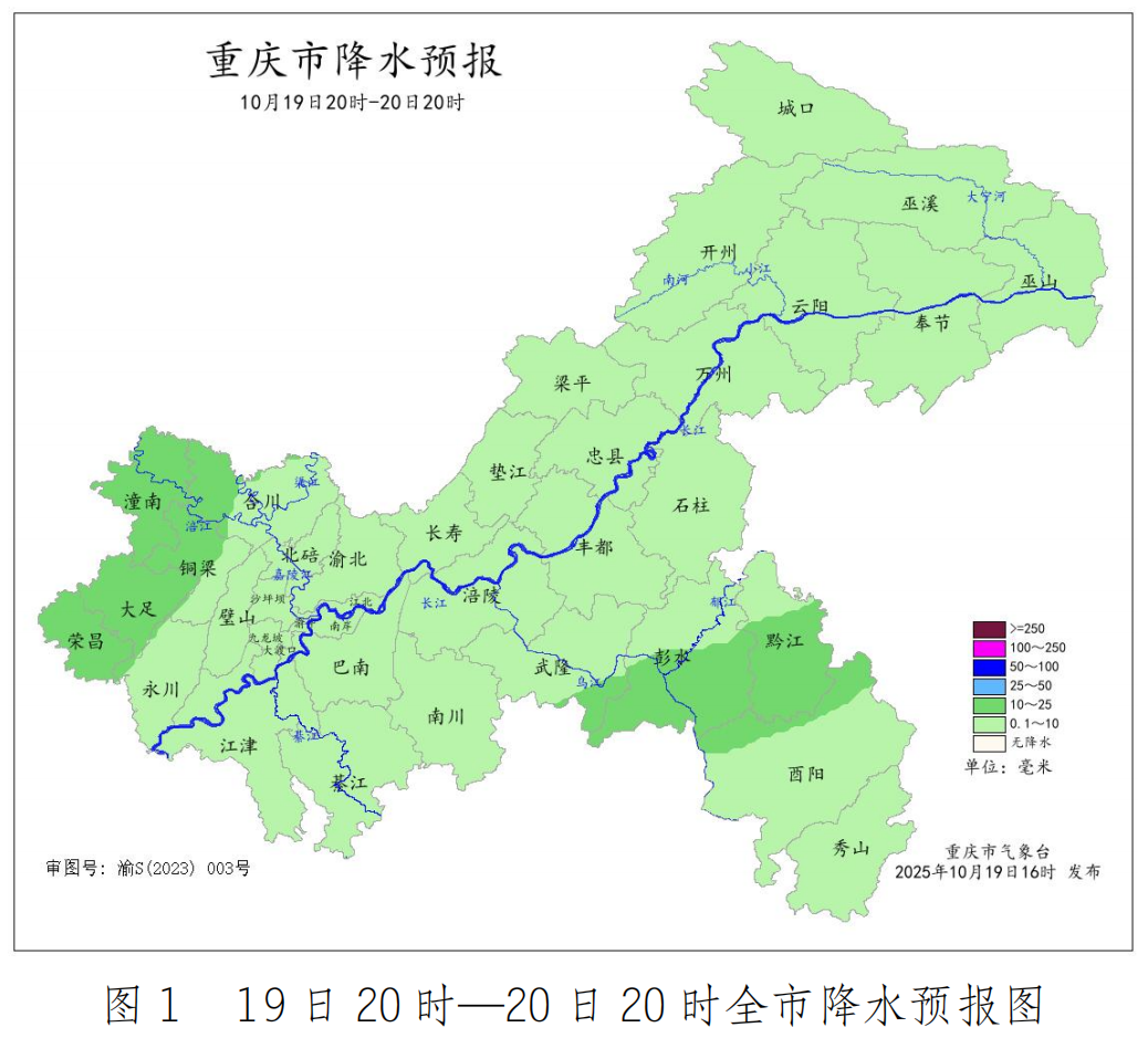 重庆市气象台预计,10月19日夜间到20日夜间,各地持续阴雨,雨量以小雨为主,气温略有下降;21日白天到22日白天,大部地区阴天到多云。