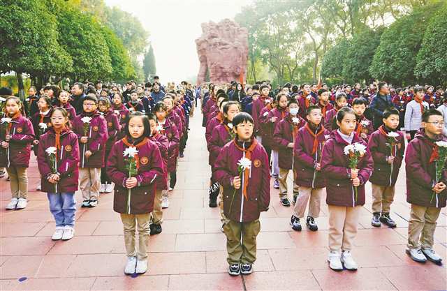 11月27日,歌乐山烈士陵园,重庆市社会各界纪念“11·27”烈士殉难76周年祭扫活动举行。
