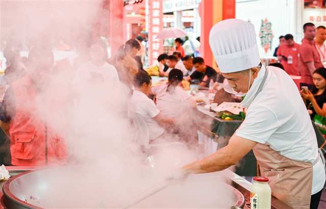 10月17日,重庆国际博览中心,大厨在室外火锅餐饮品牌展区炒料。记者 张锦辉 摄/视觉重庆