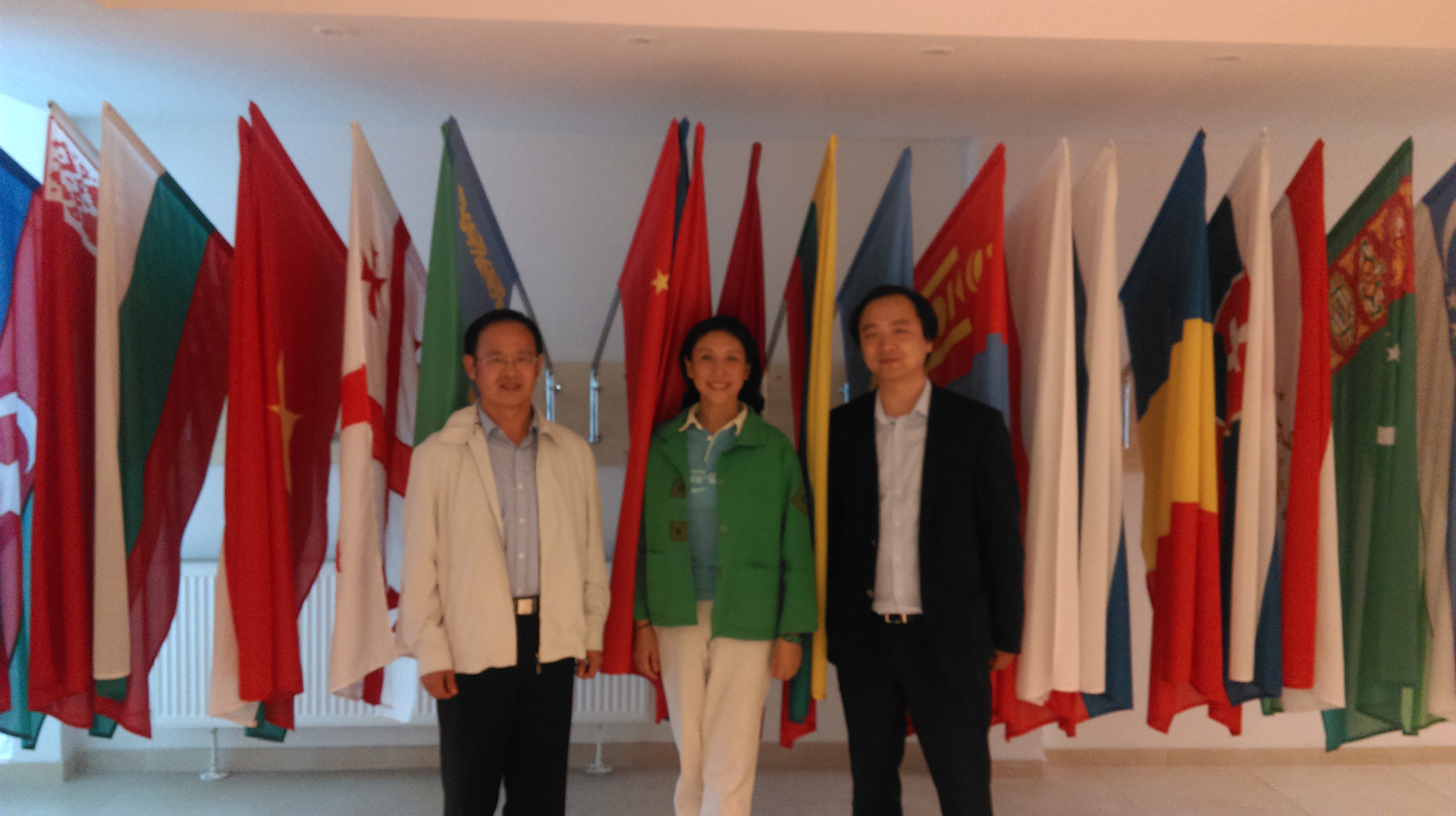 2014年6月9日,重庆驻欧洲联络处处长李淑秋在波兰华沙与铁路合作组织副主席王勇平及助手合影。受访者供图