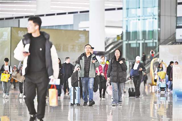 2025年12月31日,重庆江北国际机场T3A航站楼,乘客步履匆匆。 本组图片由记者罗斌摄/视觉重庆