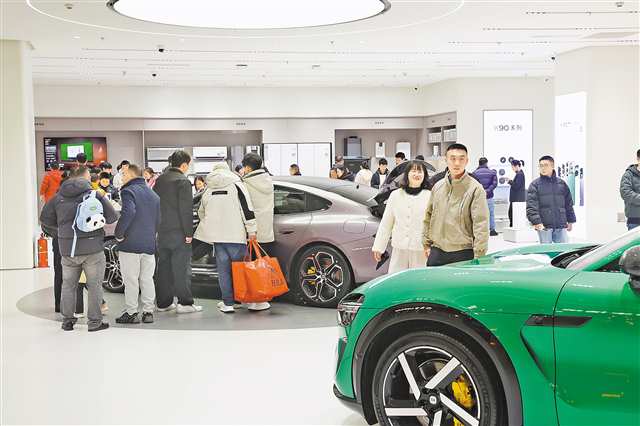 1月2日,沙坪坝区金沙天街,市民在选购新能源汽车。通讯员 郭晋 摄/视觉重庆