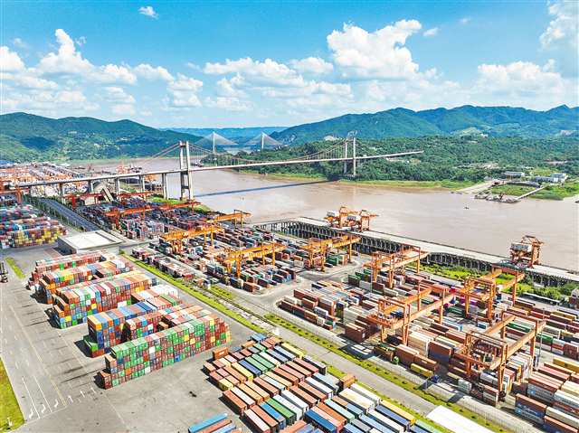 重庆果园港集装箱码头一片繁忙景象。(本报资料图片)特约摄影 王加喜/视觉重庆