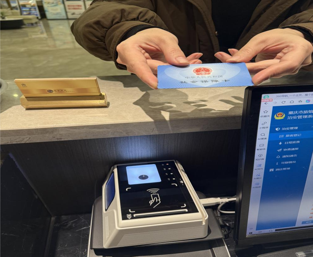 “以前住酒店只能带身份证,现在忘带身份证,刷社保卡或扫电子社保卡就能办理入住,太方便了!”在两江新区重庆金陵大饭店,刚体验完社保卡入住服务的市民李女士说。市民可通过刷实体社保卡或扫电子社保卡作为身份凭证办理入住登记,这标志着我市社保卡“一卡通”服务体系在文化旅游领域实现新突破。