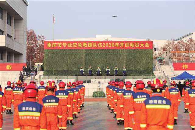 战鼓催征急,练兵正当时。1月8日上午,市应急管理局专业应急救援总队训练场旌旗猎猎、号角嘹亮,2026年全市专业应急救援队伍开训动员大会在此拉开帷幕。全市专业应急救援队伍以此次开训为新起点,拿出“闻令而动、向险而行”的战斗姿态,保持“严之又严、实之又实”的训练作风,刻苦练兵、攻坚克难,以过硬本领为奋力谱写中国式现代化重庆篇章提供更坚实的安全保障。