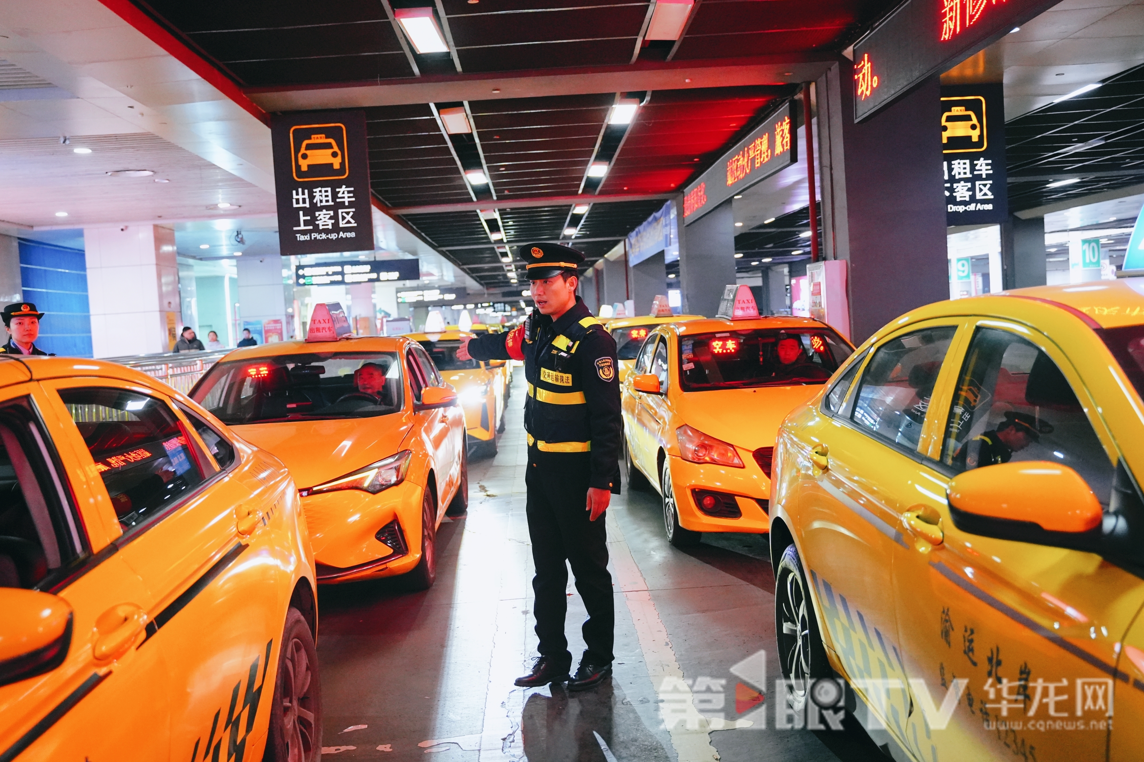 执法人员在重庆北站对出租车进行交通疏导。第1眼TV-华龙网记者 辛飞 摄