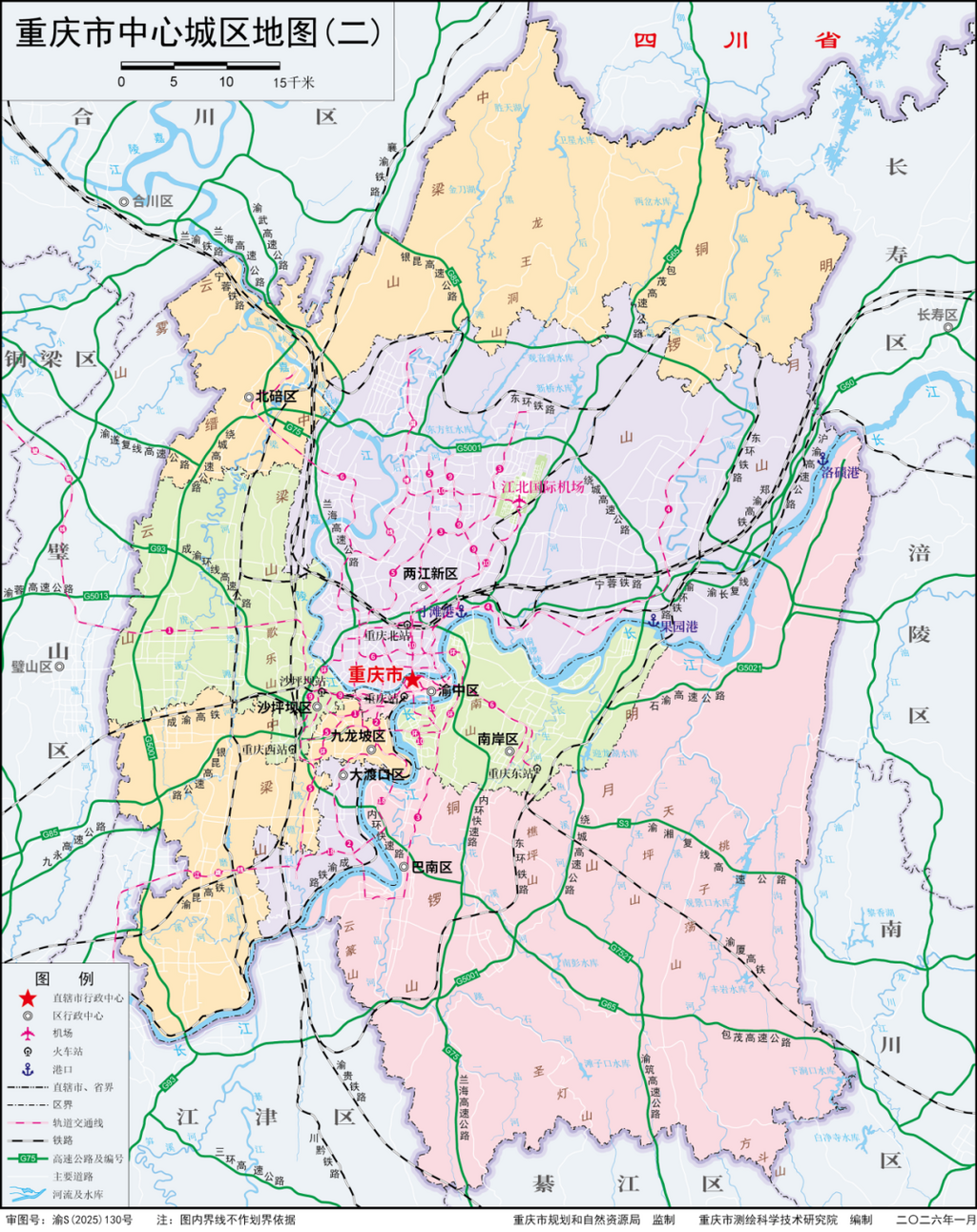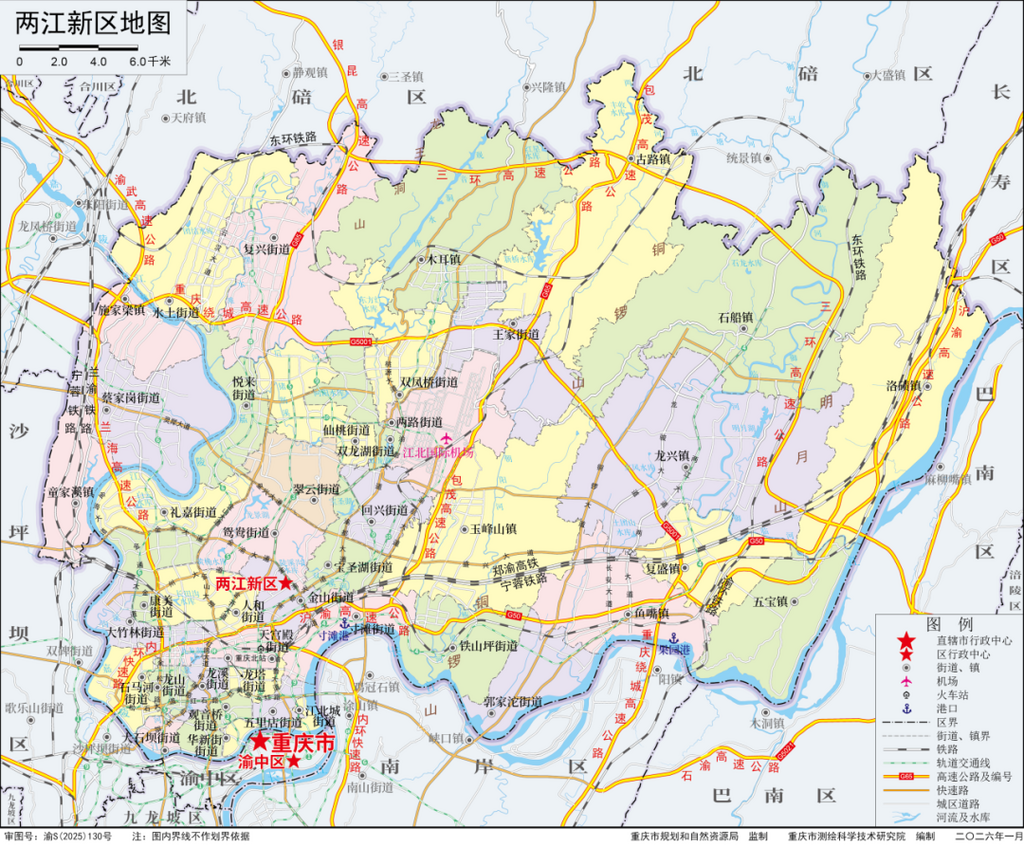 据悉,1月25日重庆两江新区行政区正式揭牌,全面开启了国家级新区和行政区融合发展的新征程。两江新区挂牌亮相之际,市规划自然资源局组织重庆市测绘科学技术研究院(重庆市地图编制中心)在第一时间完成重庆市、中心城区、两江新区、北碚区及相关地图的编制更新工作,为新区划的落地实施提供及时的地理信息支撑和地图保障服务。