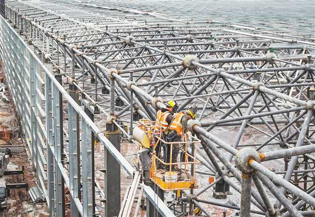 瑞航(重庆)航空发动机维修基地二期工程施工现场,工人正在加紧作业。首席记者 龙帆 摄/视觉重庆