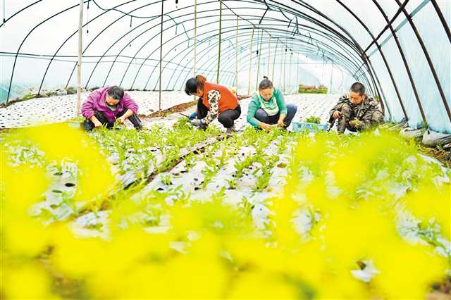 2月26日,北碚区柳荫镇麻柳河村一处蔬菜种植基地,村民在忙着栽种空心菜苗。记者 赵伟平 特约摄影 秦廷富 摄影报道/视觉重庆
