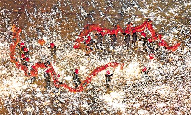 3月3日,江津区白沙镇元宵节非遗民俗文化活动现场,让人热血澎湃的铁水焰火表演。记者 齐岚森 摄/视觉重庆