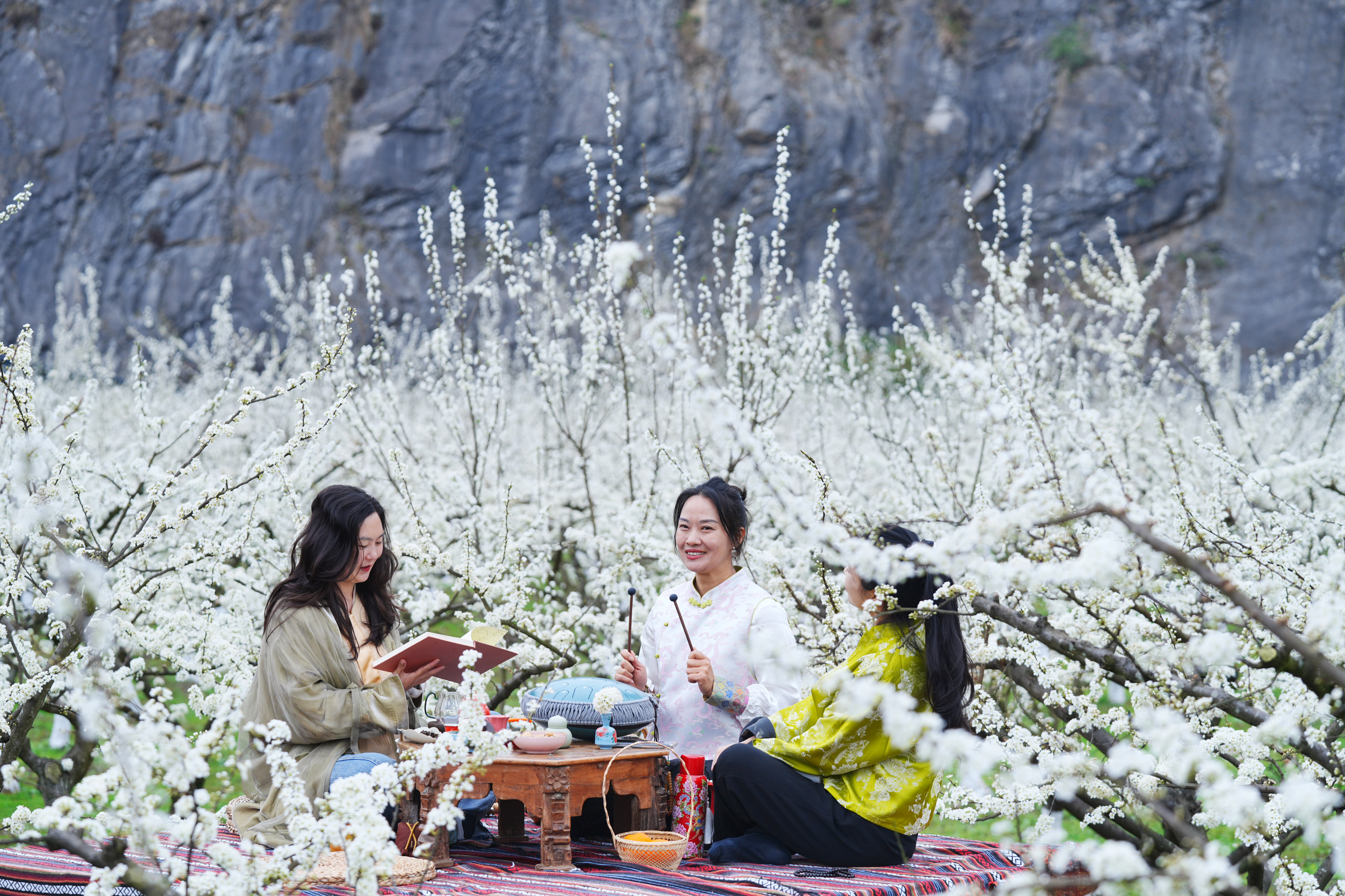 北碚区静观镇即白矿山果园,游客正在欣赏盛开的李花。(资料图片)特约摄影 秦廷富