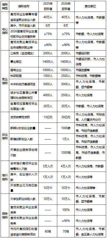附:2026年高校毕业生等青年留渝来渝就业创业工作任务分解