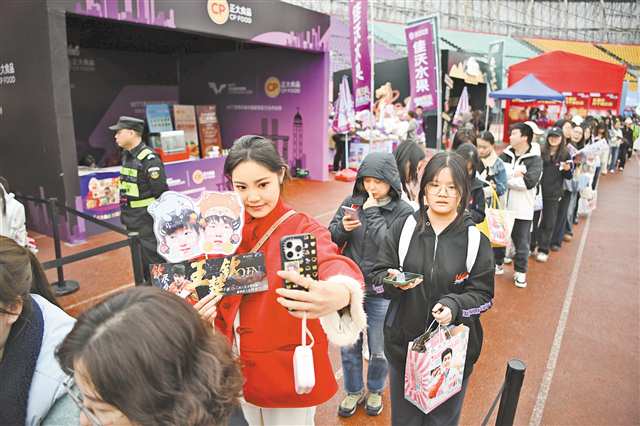 3月14日,重庆巴南华熙生物·润百颜ECM中心,球迷排队购买商品。记者 谢智强 摄/视觉重庆