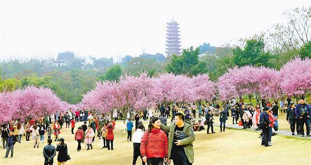 渝北2月27日,照母山梅园,市民从四面八方涌来赏花、拍照,欢声笑语弥漫山岗。特约摄影钟志兵
