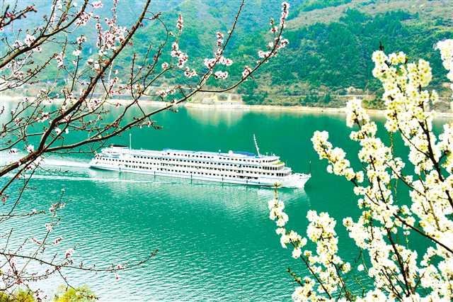 巫山3月2日,船只航行在长江三峡巫峡境内。随着气温回升,巫山县境内油菜花、杏花、樱桃花等次第绽放,给美丽巫峡更增添了几分秀色。通讯员王忠虎摄