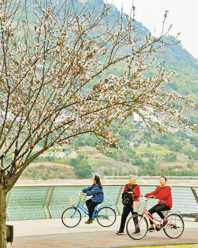 涪陵3月1日,市民在涪陵江南滨江公园赏花游玩。初春的公园,紫叶李、海棠花、迎春花等纷纷盛开,引来不少市民观赏。通讯员何乾健摄
