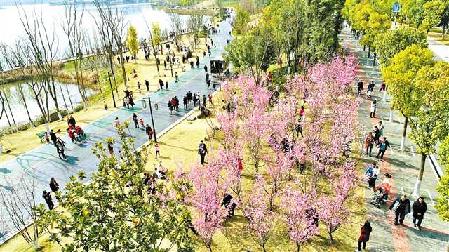 梁平3月3日,梁平区双桂湖国家湿地公园,市民正游玩、赏花。特约摄影刘辉