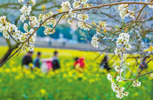 南川3月3日,南川区国家万亩高产农业示范田里,李花、油菜花交相辉映,引来市民前往观赏。特约摄影瞿明斌