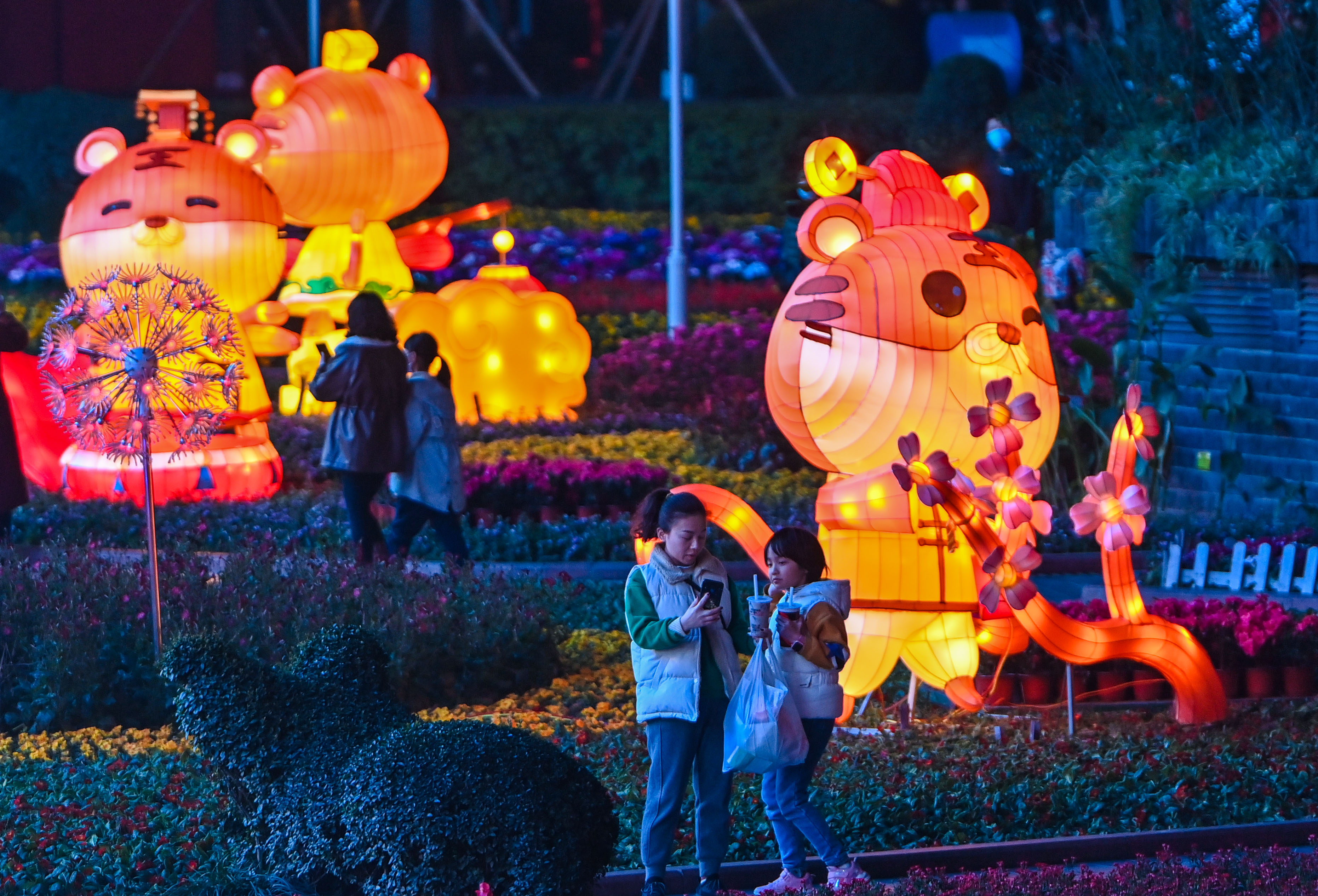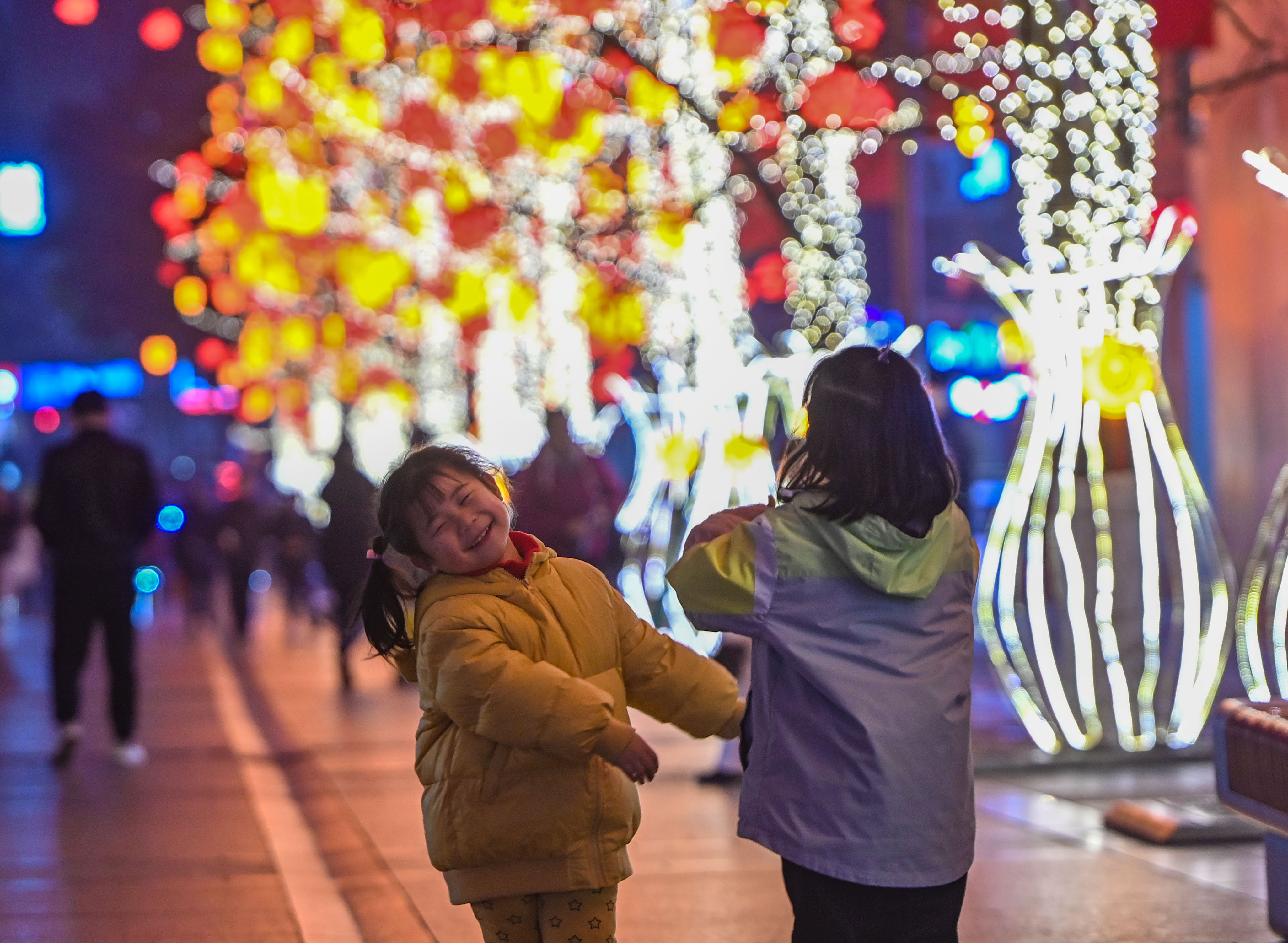 ▲1月17日,九龙坡区杨家坪商圈,市民正在灯饰前玩耍。