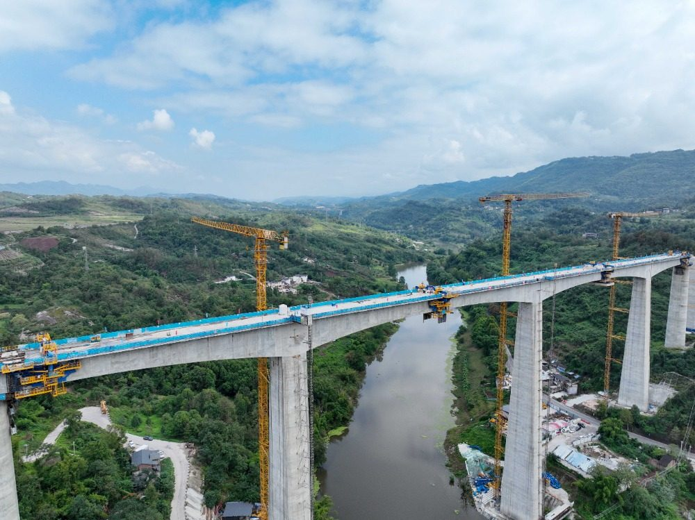 2025年9月24日,渝万高铁五布河双线特大桥成功合龙,为全线贯通奠定坚实基础(无人机照片)。特约摄影 李攀