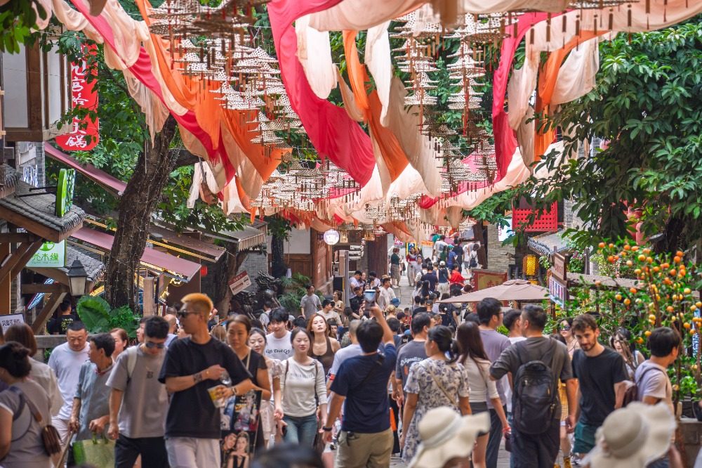 国庆长假虽已结束,渝中区十八梯传统风貌区“错峰游”游客量热度不减。特色小吃店与文创手作店铺门前依然人气十足,茶馆里坐满了悠闲的游客,展现出我市传统风貌区持久的吸引力与消费韧性。
