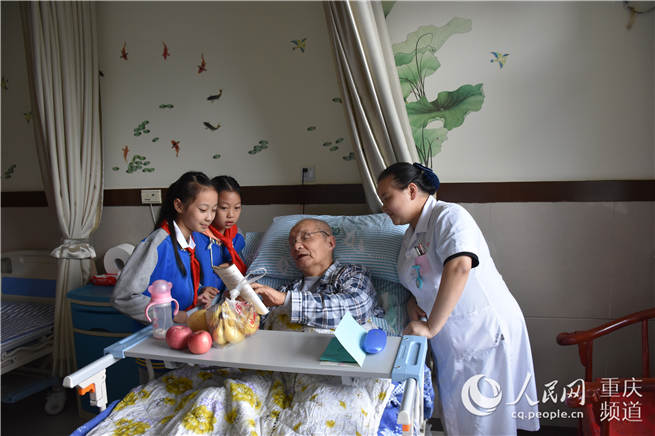 中学生志愿者慰问沙坪坝区井口社区卫生服务中心老人。(资料图)院方供图