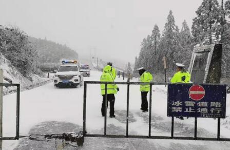 12月26日,酉阳县板溪镇封锁部分冰雪道路。(市应急局供图)