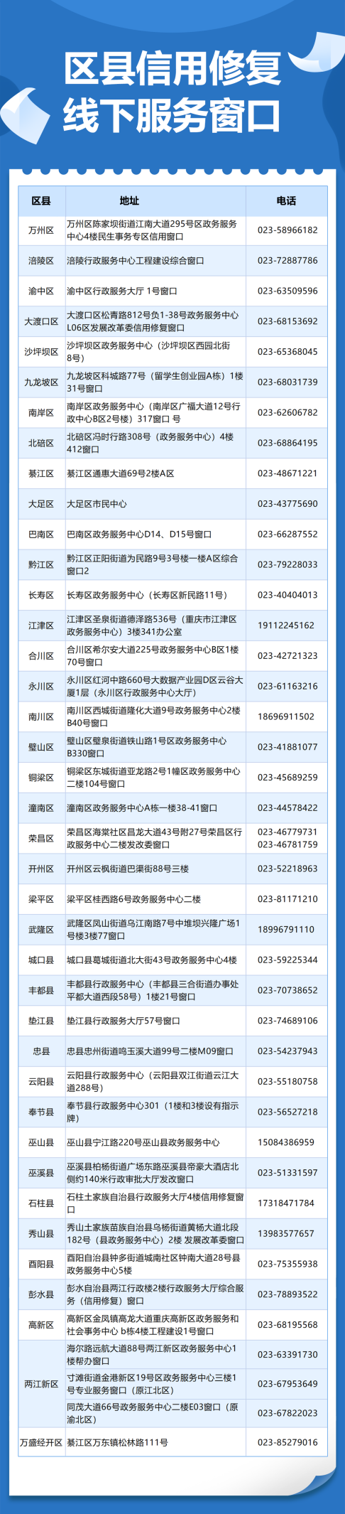 区县信用修复线下服务窗口