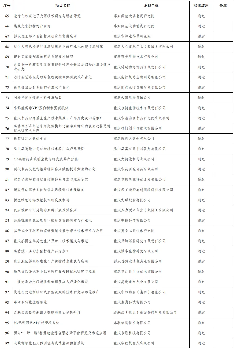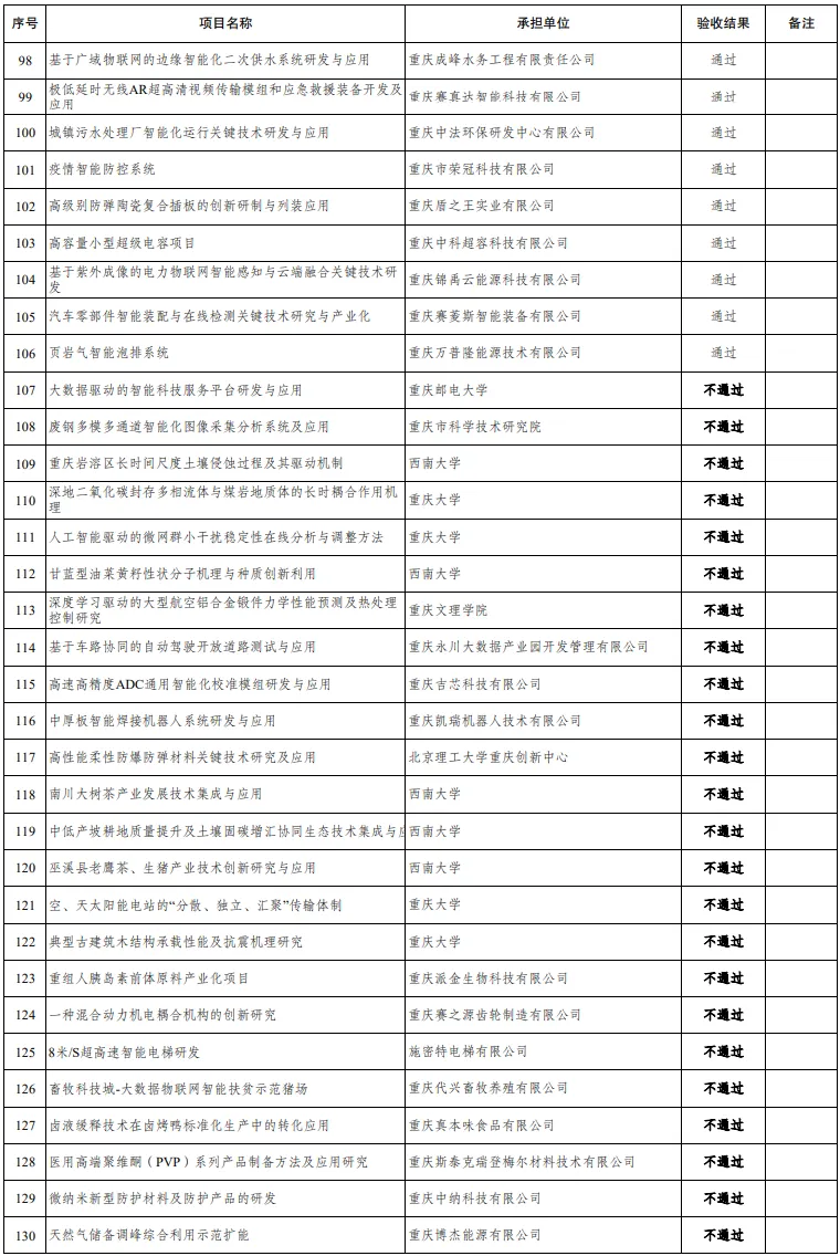 11月19日,重庆市科学技术局官网发布通知,对近期验收的科研项目进行公示,详情如下: