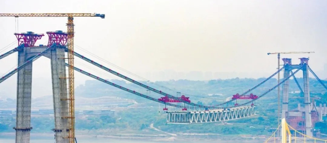 目前,黄桷沱长江大桥正在进行主梁结构拼装作业,共计63个节段,现已拼装至第19节段。