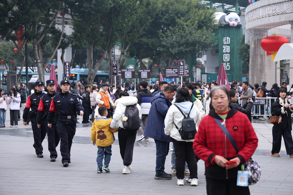 重庆动物园是每年节假日游客选择的热门景区之一,为守护游客安心畅游,九龙坡区公安分局全员上岗、坚守一线,采取“定点值守+动态巡逻”模式,在出入口、核心景点、停车场等关键部位布防,启用“步巡+车巡+视频监控巡”三位一体巡防机制,高效开展秩序维护、咨询引导、寻人寻物、紧急救助等服务。