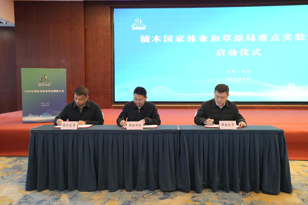 会上举行了楠木国家林业和草原局重点实验室建设启动仪式。该实验室由重庆市林业科学研究院牵头,联合西南大学、长江大学共建,标志着重庆珍贵树种科技创新平台建设迈入国家级序列。