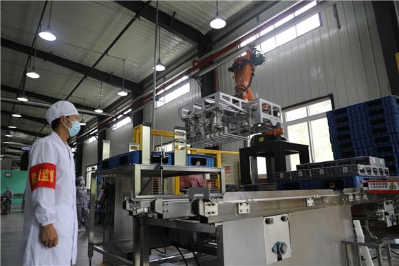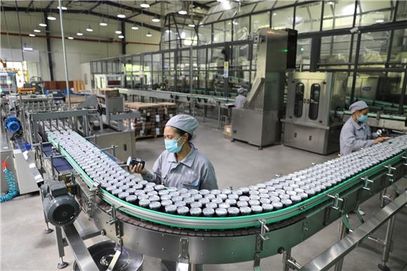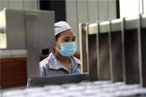 昨(4)日,位于彭水苗族土家族自治县乔梓乡长寿村的太极泉水公司车间内,工人在生产线上忙碌。